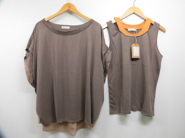 > 新品 soulberry ソウルベリー t6a0139 レイヤードトップス 2点 タンクトップ×半袖Tシャツ ノースリーブ 無地 モカ ブラウン 茶 LLサイズ