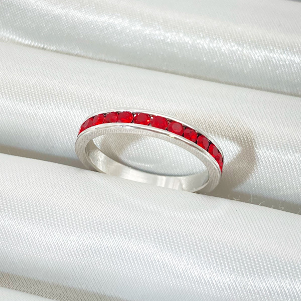 - 送料無料!! フルエタニティ ラインストーン レッド 9号 デザインリング 指輪 パーティー 赤 勝利 女神 ◇R-0219