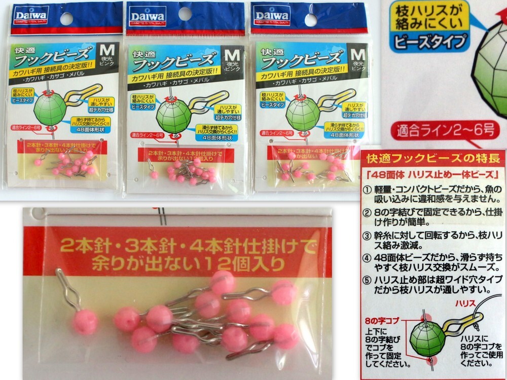 - 946/未使用/ダイワ 快適フックビーズ 夜行ピンク M ライン2-6号 12個入3セット(合計36個)※出品者の他の商品とまとめて購入するで同梱