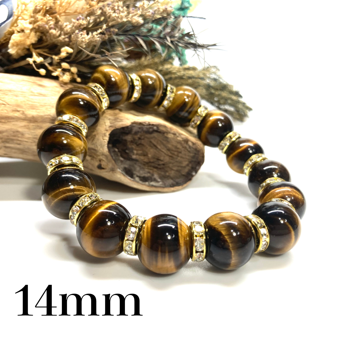 > パワーストーン ブレスレット タイガーアイ 14mm 天然石ブレス (ゴールド) 開運 金運 浄化 数珠ブレス メンズ 男性 プレゼント