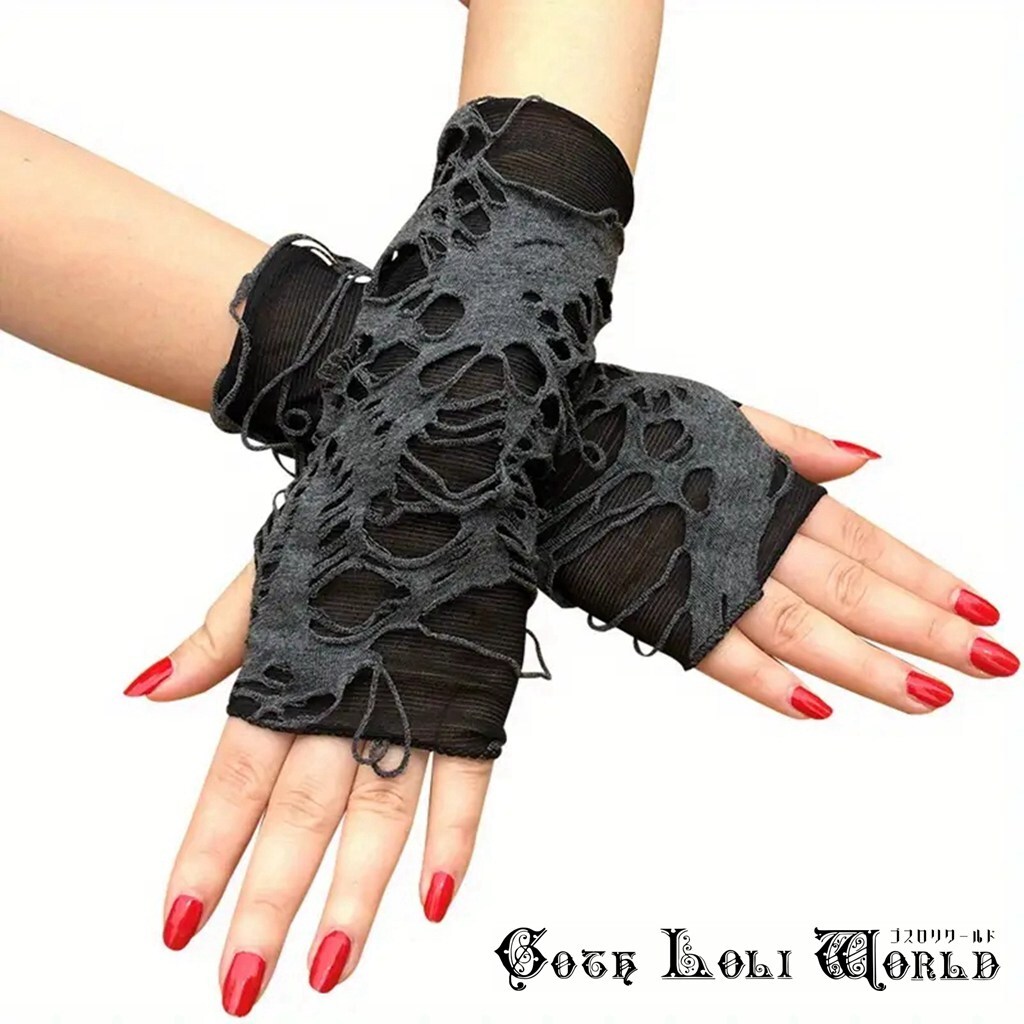 > GE099CE-FREE ダメージ加工ショート アームウォーマー グレー色 男女兼用 メンズ レディース ゴスロリワールド ゴシック パンク ロック V系