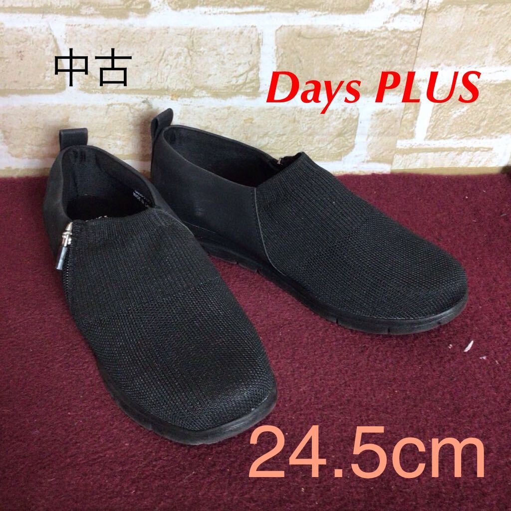 - 【売り切り!送料無料!】A-381 Days:PLUS!スリッポン!24.5cm! 黒!ブラック!サイドファスナーあり!メッシュスリッポン!中古!