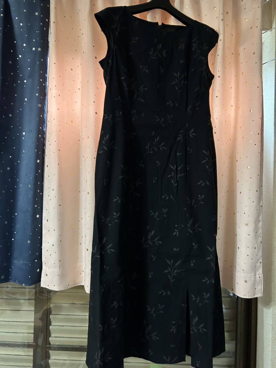 - ミスオンワード 黒の草柄半袖ロングワンピース 11 L