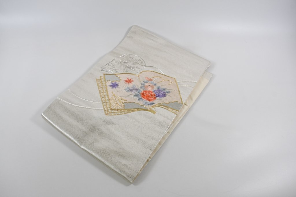 - 名古屋帯 冊子 本 物語 金銀糸 正絹 帯丈345cm ★着物屋 ne-12000 桜庭呉服店
