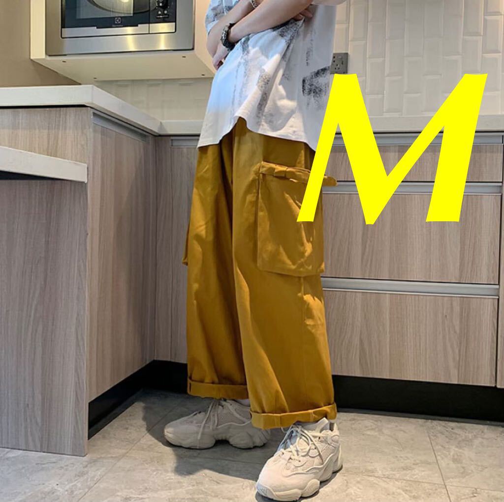 - ボトムス ワイドパンツ カーゴパンツ ワークパンツ ルーズパンツ トレンド ストリート 好評 メンズ レディース オルチャン 黄色 イエロー M