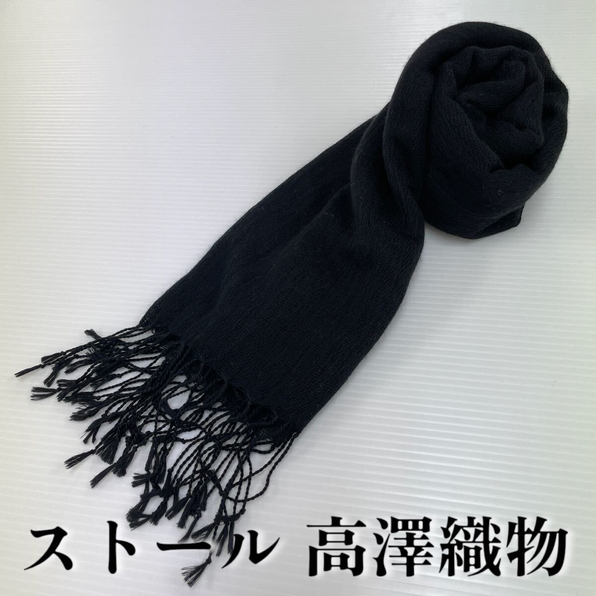 - 【ストール 高澤織物】未使用 黒 カシミヤ? 秋冬 スカーフ ショール 肩掛け 膝かけ 国産 日本製 防寒 #0263-381Z2