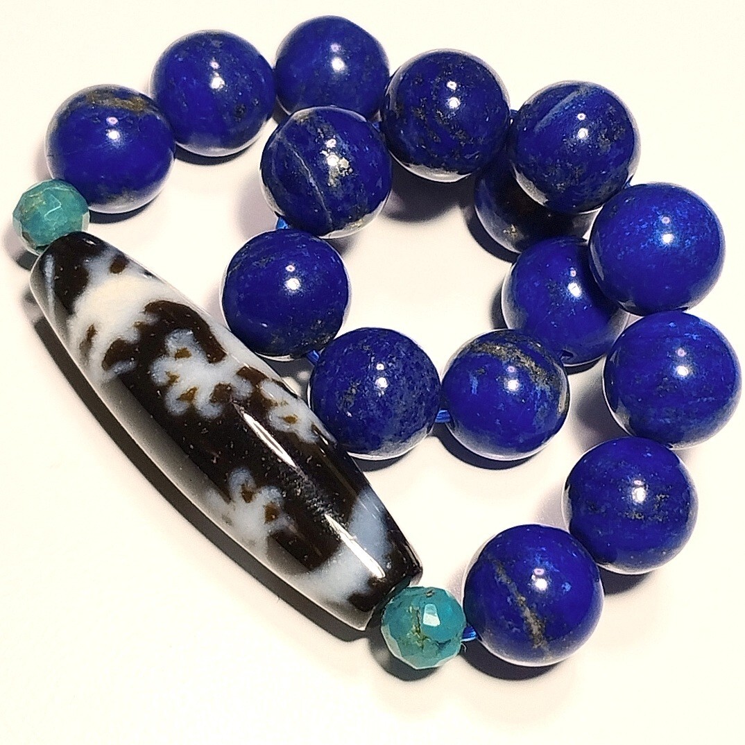 - 皇帝龍天珠(五爪龍神天珠) ラピスラズリ ターコイズ ブレスレット 龍神天珠