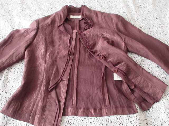 - Q)■日本製■【CORNEILLE】■光沢有る茶系/綿28%混レーヨン■襟~前立て2枚フリル■美しいプリンセスライン!■サマージャケット■