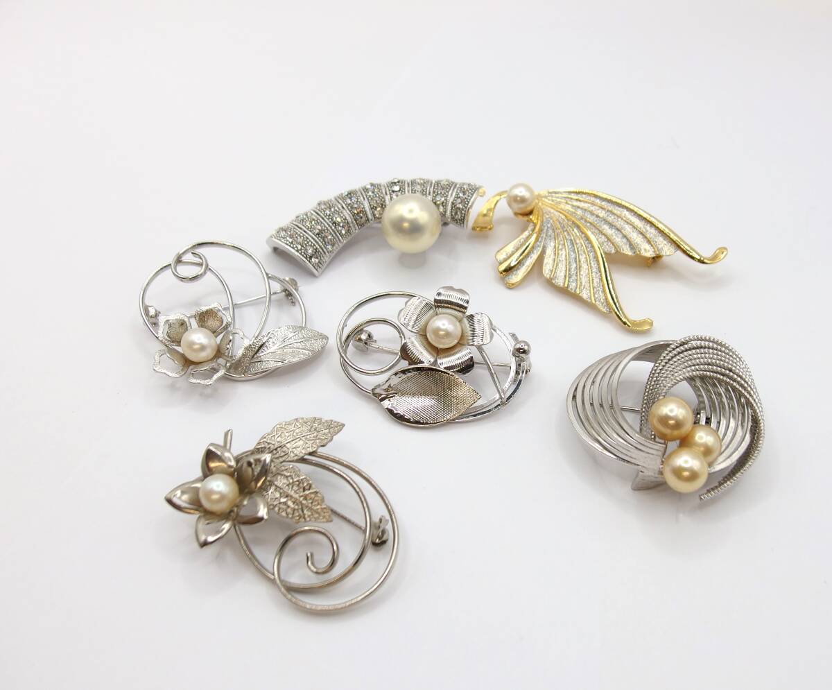 - 本真珠 フェイクパール ブローチ ヴィンテージ 6点 59.2g セット / MA1275