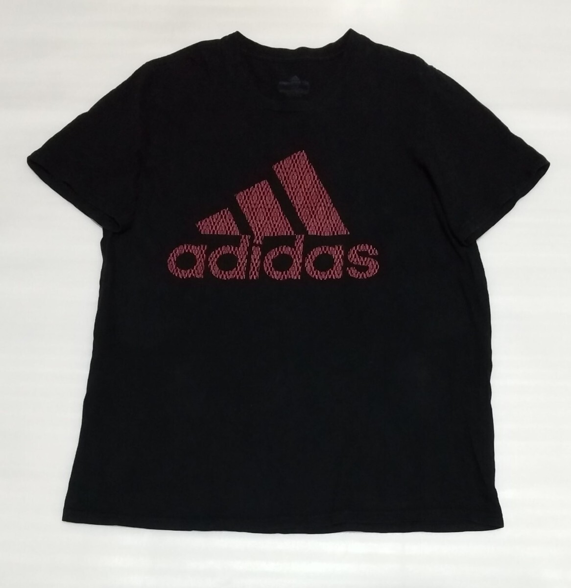 > ☆adidas.com サイズL 半袖Tシャツ 洗濯済AMPLIFIER TEEスポーツ黒ラバーPERFORMANCEプリントCOTTONウェア ファッション ティー アディダス