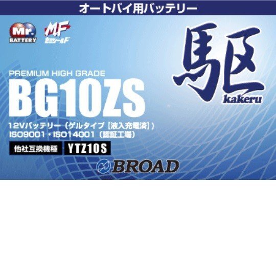 - BG10ZS ブロード 駆 カケル オートバイ用 二輪用 バッテリー 高性能 ゲルタイプ 12V