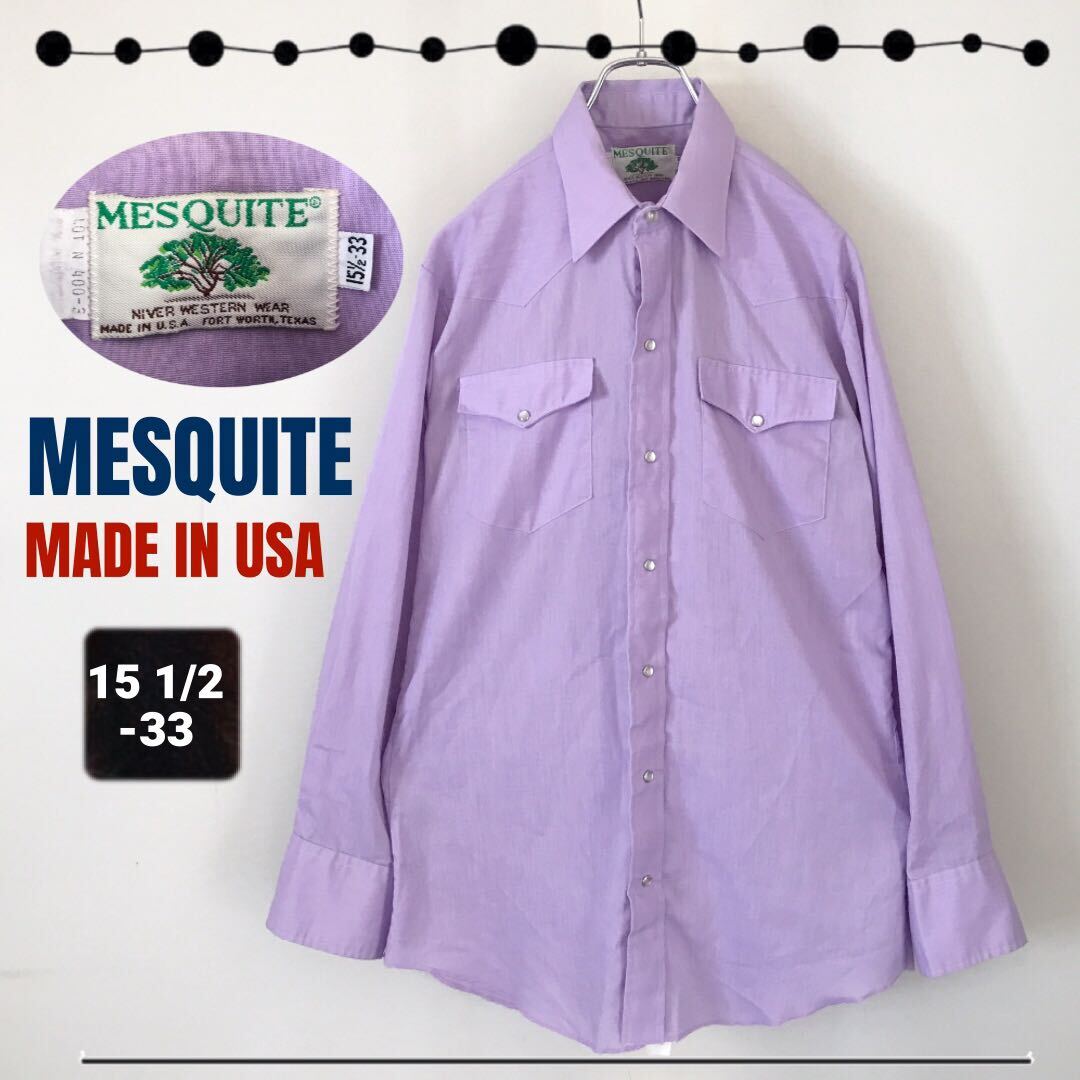 > MESQUITE メスキート★USA製/80年代★ポリコットン★ウエスタンシャツ ★ラベンダー★15 1/2-33