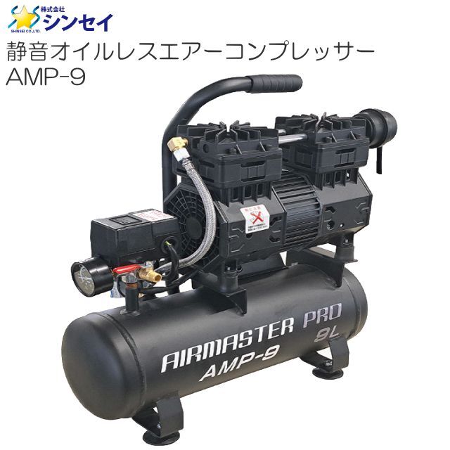 - エアーコンプレッサー シンセイ 静音オイルレスエアーコンプレッサー AMP-9 9L AC100V