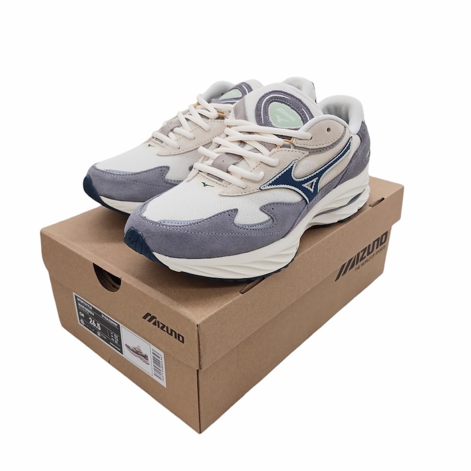 - 未使用品 Mizuno Wave Rider β Light Gray Navy Beige ミズノ ウェーブライダー ベータ スニーカー D1GA330907