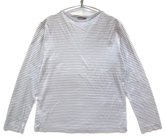 - 極上イタリア製!!エムデコ HEMDECO*ボートネック ボーダー柄コットンカットソー・長袖バスクTシャツ M グレー×白 クラシコイタリア
