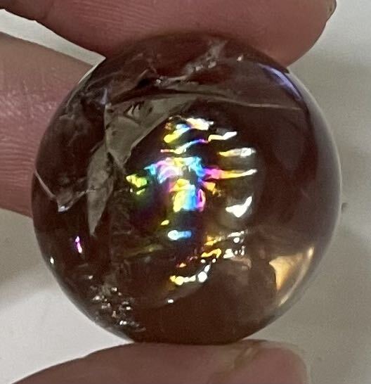 - スモーキークォーツ 010 茶水晶 クリスタル丸玉 スフィア 置物 魔除 お守 風水晶 幸運 ラッキー 高品質 天然石 レインボー 虹入