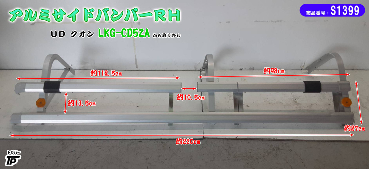 > トラック アルミ サイドバンパー RH 右 幅約220cm ステー間の調節可能 UD クオン LKG-CG5ZA 取り外し