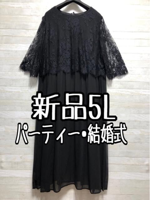 - 新品☆5L黒系♪レース×プリーツ♪エレガントなワンピドレス♪1.8万円相当☆A201