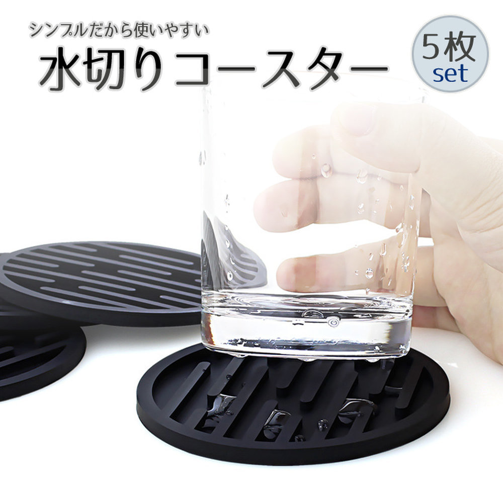 > コースター 5枚セット 水切りシリコン 耐熱 防水 鍋敷き グラス置き コップマット ドリンクコースター 滑り止め GWSCM1005S5
