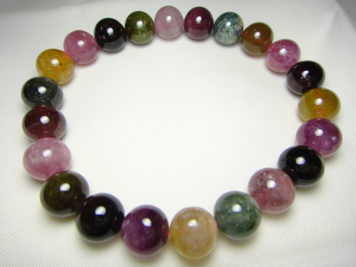 - 天然石 美! マルチカラートルマリン 約8.5~9㎜玉 ブレスレット Y294