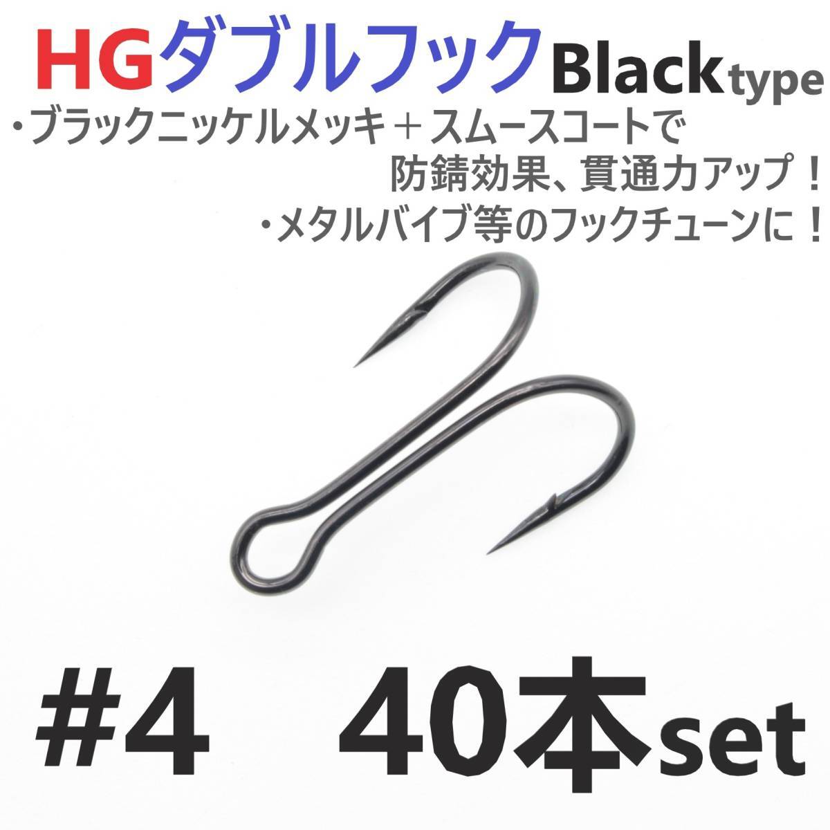 - 【送料150円】HGダブルフック ブラック #4 40本セット ハイグレードフック ソルト対応 メタルバイブ バイブレーション フックチューンに!