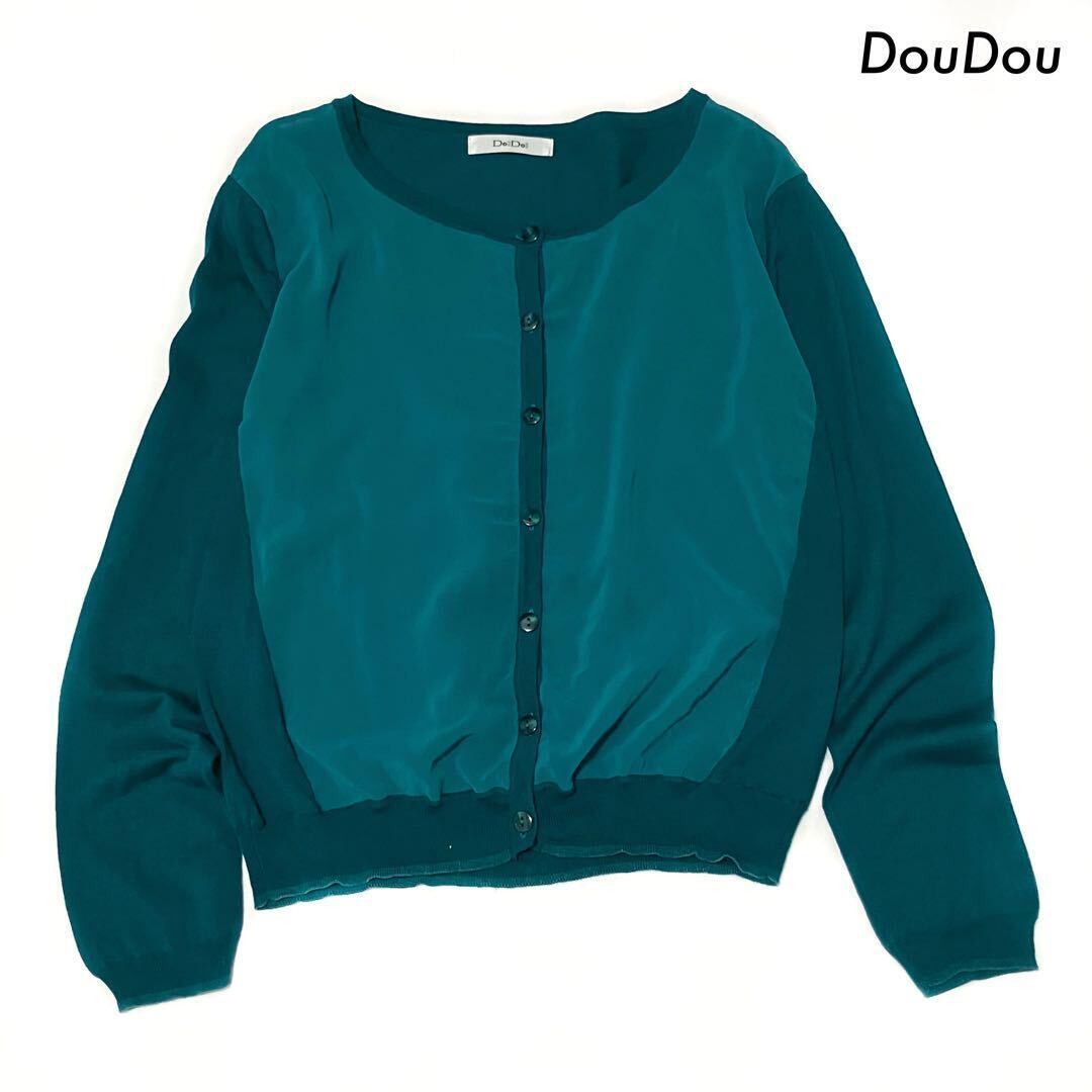 - 【送料無料】DouDou ドゥドゥ★異素材切替 長袖カーディガン グリーン 緑