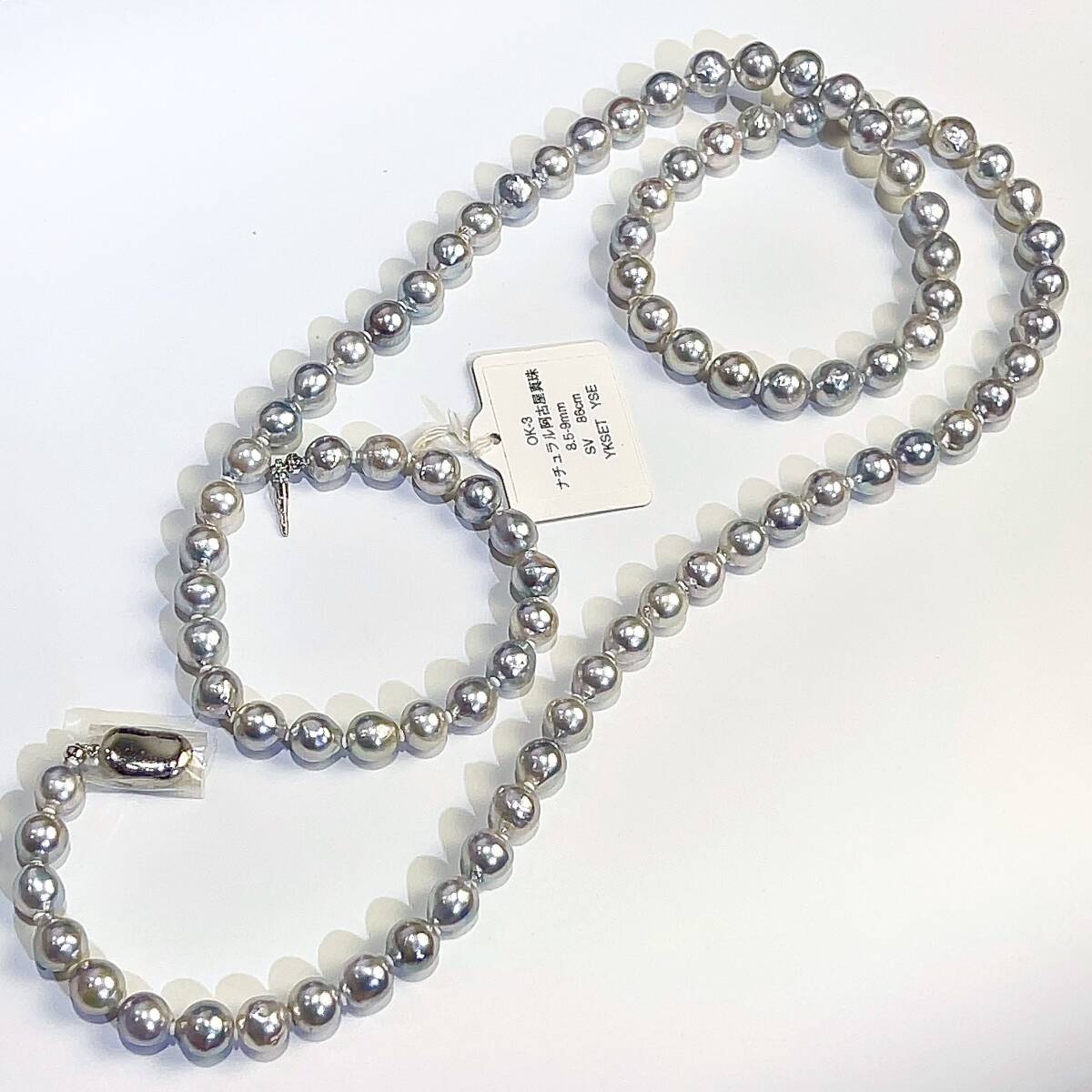 - SV AKOYA ナチュラル 無調色 アコヤパール バロック ロング ネックレス ナチュラルグレイ 8.5-9mm 天然本真珠 レディースアクセサリー 新品