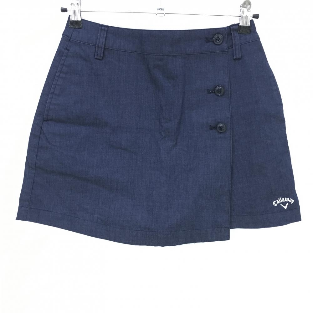 > 【美品】キャロウェイ キュロットスカート ブルー デニム ロゴ刺しゅうストレッチ レディース S ゴルフウェア Callaway