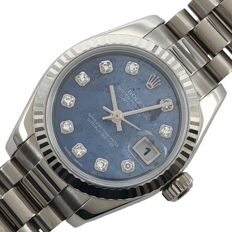 > ロレックス ROLEX デイトジャスト26ソーダライトダイヤル 179179G シルバー K18WG 腕時計 レディース 中古