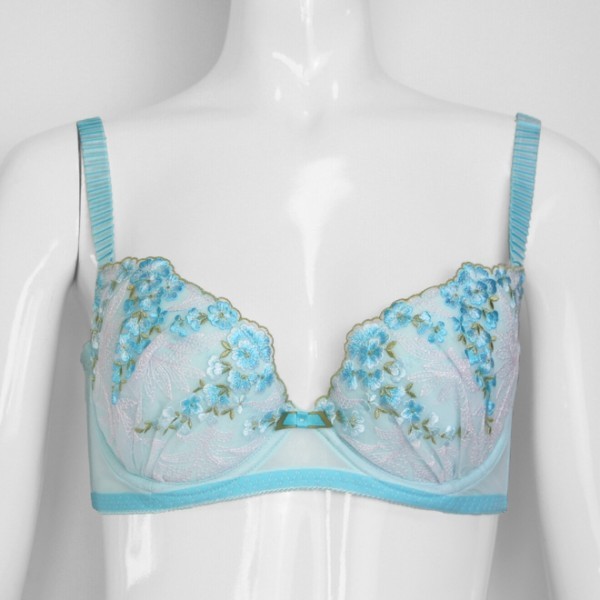 > 【新品】B85 デコルテふっくら ボリュームアップブラジャー■脇肉 ハミ肉スッキリ 脇高ベルト スリム■エアリーブルー