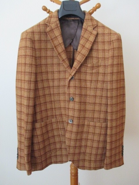 - L1826【ジャケット】茶系/チェック柄/サイズ52/ITALY/USED