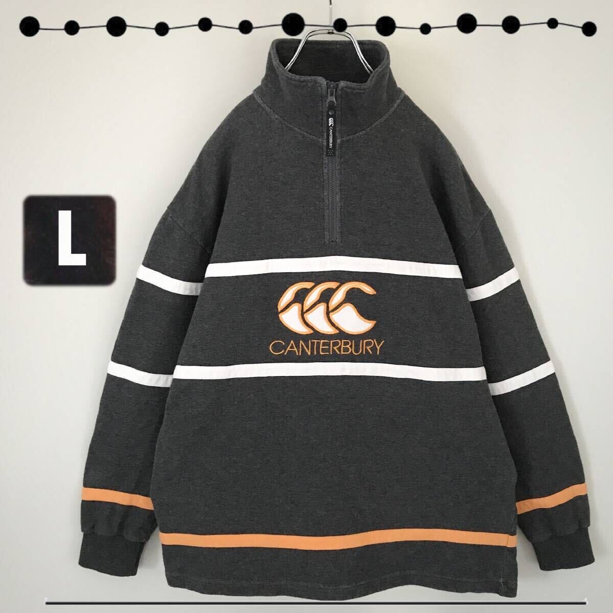 > canterbury カンタベリー★ハーフジップ★モックネック★プルオーバー★スウェット★刺繍ビッグロゴ★ラインテープボーダー★メンズL