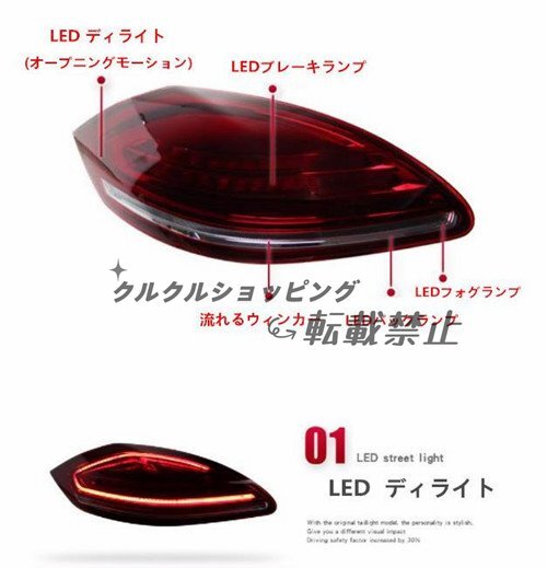> 高品質ポルシェ パナメーラ970 前期 2009-2012 LEDテールライト テールランプ 流れるウインカー 外装カスタム オープニングモーション