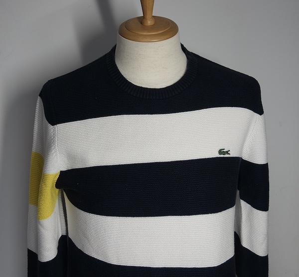 > TK 美品 ラコステ 『一部変則ポイントカラー◎』 コットン ニット セーター ボーダー柄 2 綿100 日本製