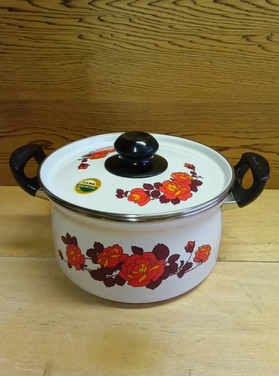 - 24092311 象印ホーロー両手鍋 昭和レトロ 両手鍋 象印 花柄 昭和ポップ 花柄両手鍋 美品