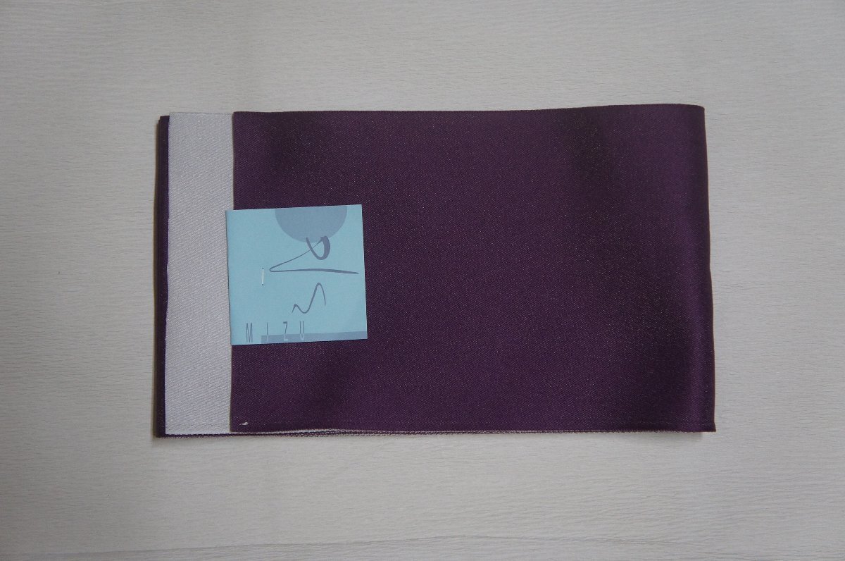 - 化繊紫色グレー色リバーシブル未着用半巾帯[N15414]