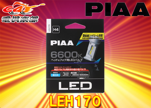 > 【取寄商品】PIAA(ピア)LEH170ヘッド&フォグ用コントローラーレスLEDバルブ6600K/12V-18W/Hi3800・Lo3000lm/H4/3年保証/車検対応/2個入