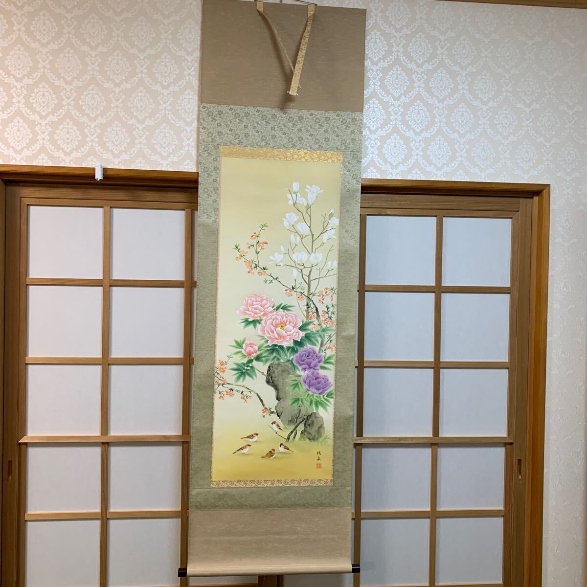 - 掛軸 模写 花鳥図 木箱有り 紙箱有り No.7-25