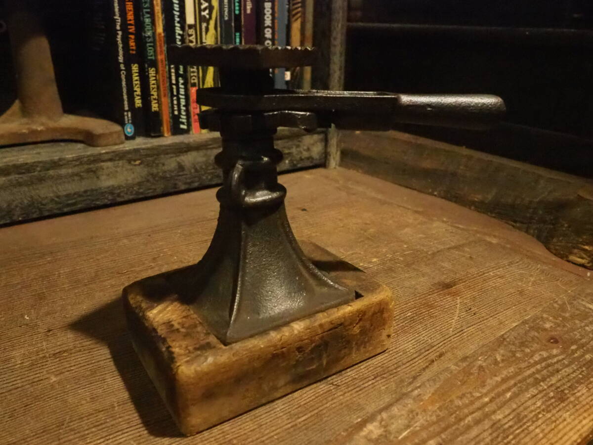 - 【アイアンジャッキ】木製台座アイアン昭和レトロ古道具アンティーク骨董インテリア鉄製インダストリアル自動車タイヤ交換