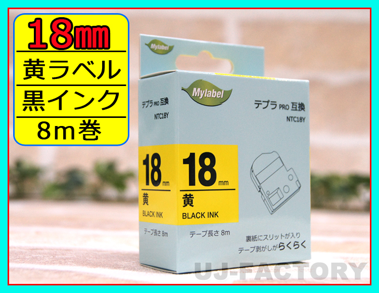 - 【即納!】★テプラPRO用互換テープカートリッジ/ラベル★18mm幅×8m・黄色テープ/黒文字 NTC18Y(SC18Y対応)