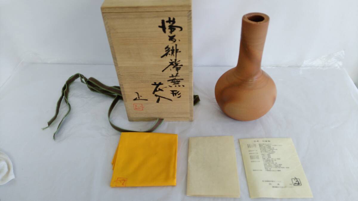 > 未使用品 備前焼 吉本正 備前緋襷蕪形花入 火襷 緋襷 花瓶 花器 花入 花生 フラワーベース 共箱 共布 骨董 古美術 古物 伝統工芸