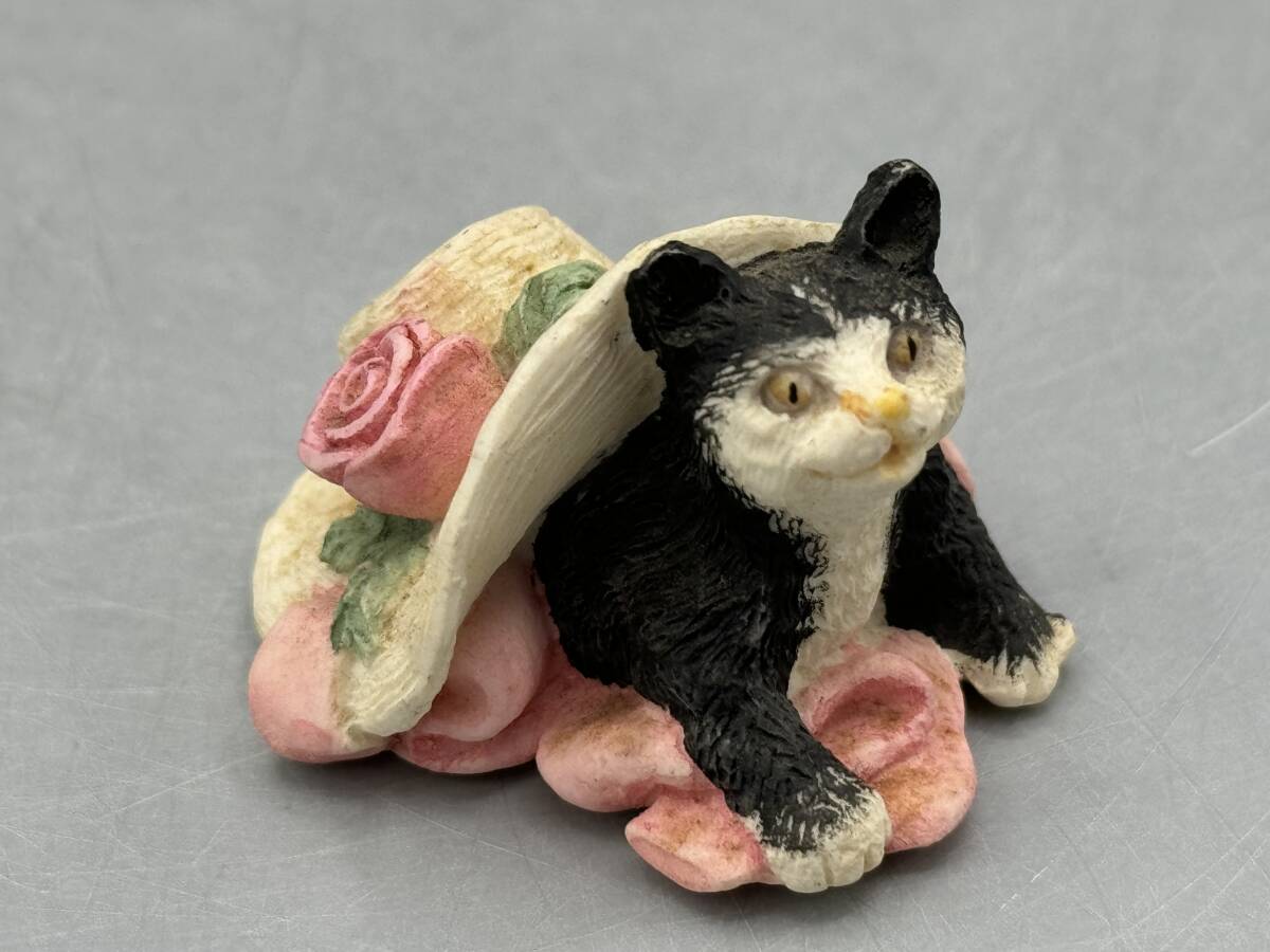 - 白黒 ハチワレ 猫 置物 ねこ ネコ フィギュリン (③)