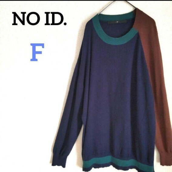 > NO ID. ノーアイディー マルチカラークレイジーパターンニット パッチワーク レーヨン パープル グリーン ブラウン 紫緑茶色