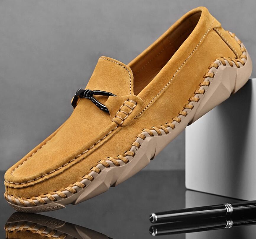 - ローファー スリッポン牛革 ビジネスシューズ スエード革 レザーシューズ 本革ドライビングシューズ メンズ紳士靴 ゴールデン 24cm~28.5cm