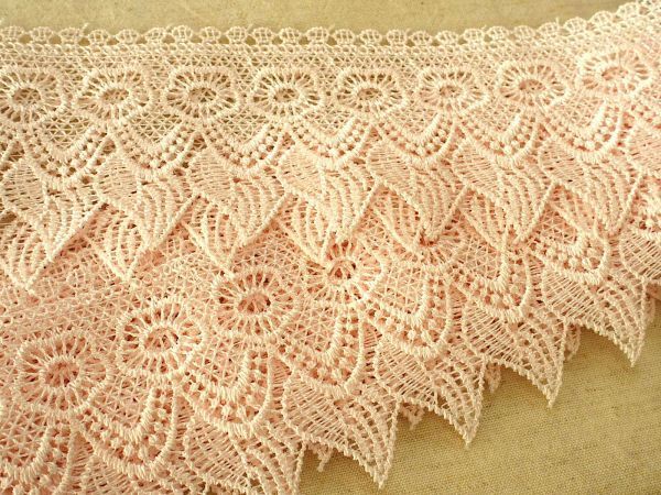 - 即決 ! 60cmカット 幅広ケミカル レース ピンク☆ 手芸 クラフト ドレス