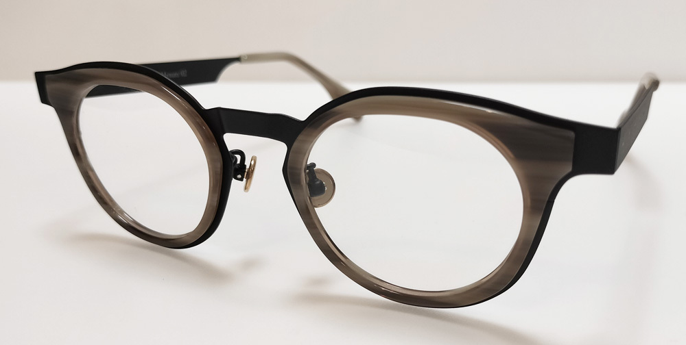 > テンプルが定規に!? Filton フィルトン Mesure 02 c8 マットブラック/ミルキーホーン 日本製 ボストン 地味色コーデ