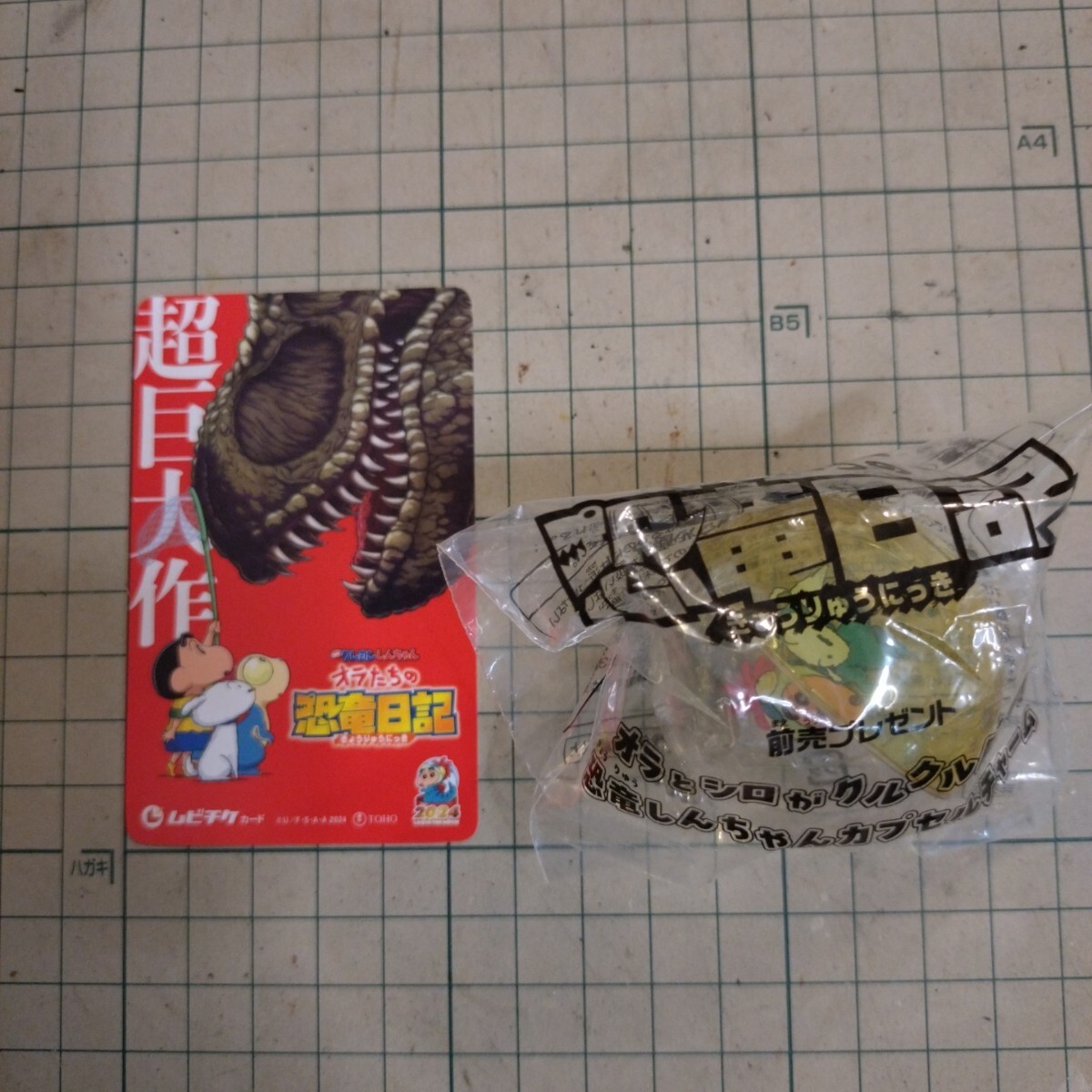 - 使用済みムビチケ「 クレヨンしんちゃん オラたちの恐竜日記&前売特典「オラとシロがクリクル回るゾ!恐竜しんちゃんカプセルチャーム