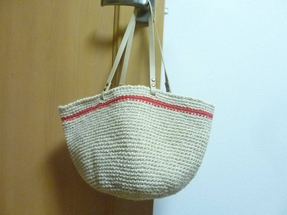- ★ハンドメイド★赤いラインがかわいい♪麻ひも編みのマルシェバッグ/エコバッグ/手作り