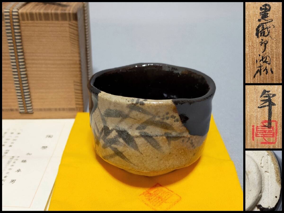 - TO28 美濃焼 酒器 人間国宝 加藤卓男 造 黒織部 酒杯 ぐい呑 栞・共布・共箱