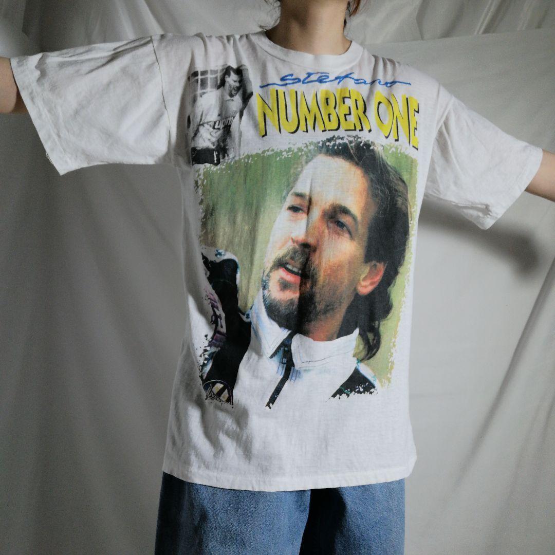- 雰囲気系 90s ユーロ ヴィンテージ プリントTシャツ Stefano tacconi ユヴェントス サッカー ホワイト メンズ M ビンテージ 襤褸 古着 1620
